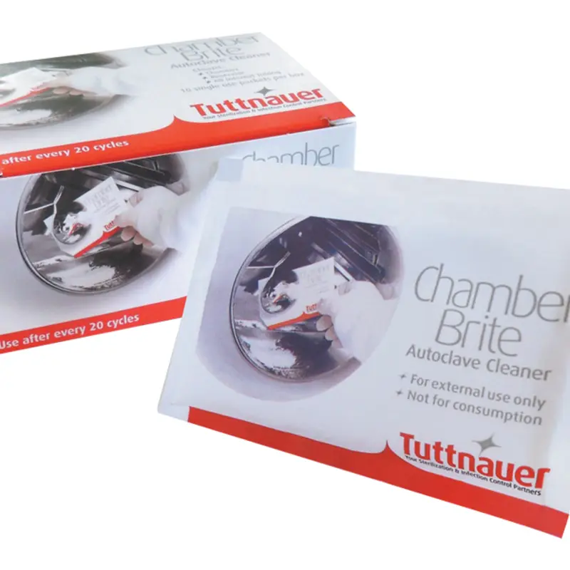 Chamber Brite Cleaning Powder – The easiest way to keep your autoclaves clean and free of hard water deposits. Designed specifically for steam sterilizers, Chamber Brite effectively cleans and descales the reservoir, chamber and tubing in minutes.