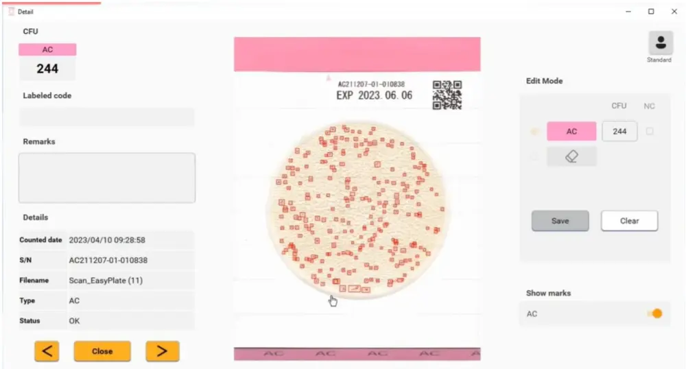 Boost productivity with the automated Colony Counting System for Easy Plate. This free software program is easier and more efficient than manual colony counting. Simply scan up to 7 Easy Plates at a time using the Brothers Industries Printer Model ADS-4300N (Available as item 5300-55) and the images will be imported into the Colony Counting System for Easy Plate software for analysis.