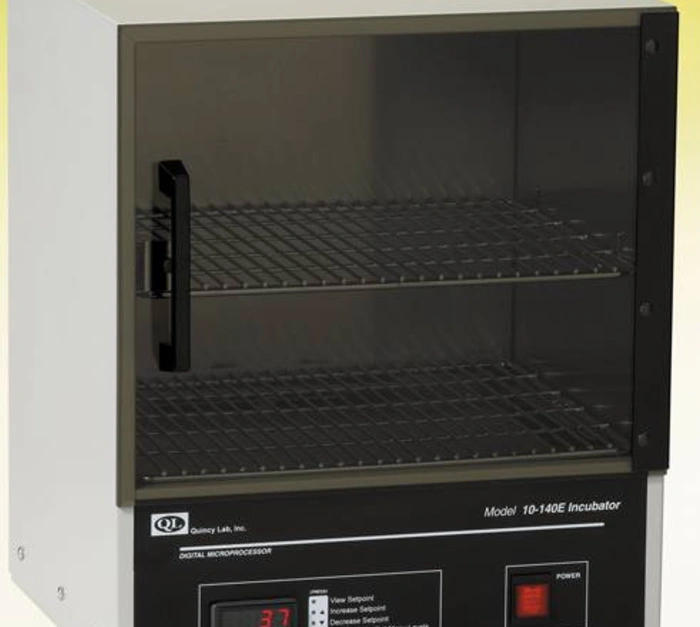 The Economy Analog and Digital Incubators are ideal for labs requiring a constant thermal environment. A high-grade aluminum interior and cold-rolled steel powder-coated exterior provide durability and long life, while the see-through tinted acrylic door enables viewing of the entire inner chamber without heat loss. All units include a 6-ft three-wire cord and plug and a chrome-plated, adjustable shelf. 18-month warranty