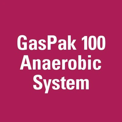 The GasPak™ 100 system is a self-contained unit for cultivating and isolating anaerobes. The system consists of a 2.5 L jar, a vented lid with ''O'' ring gasket, a clamp/thumbscrew assembly, a catalyst reaction chamber, two catalyst charges, one 12-place dish rack for 100 x 15 mm dishes, and one 13-place, 13 mm tube holder.