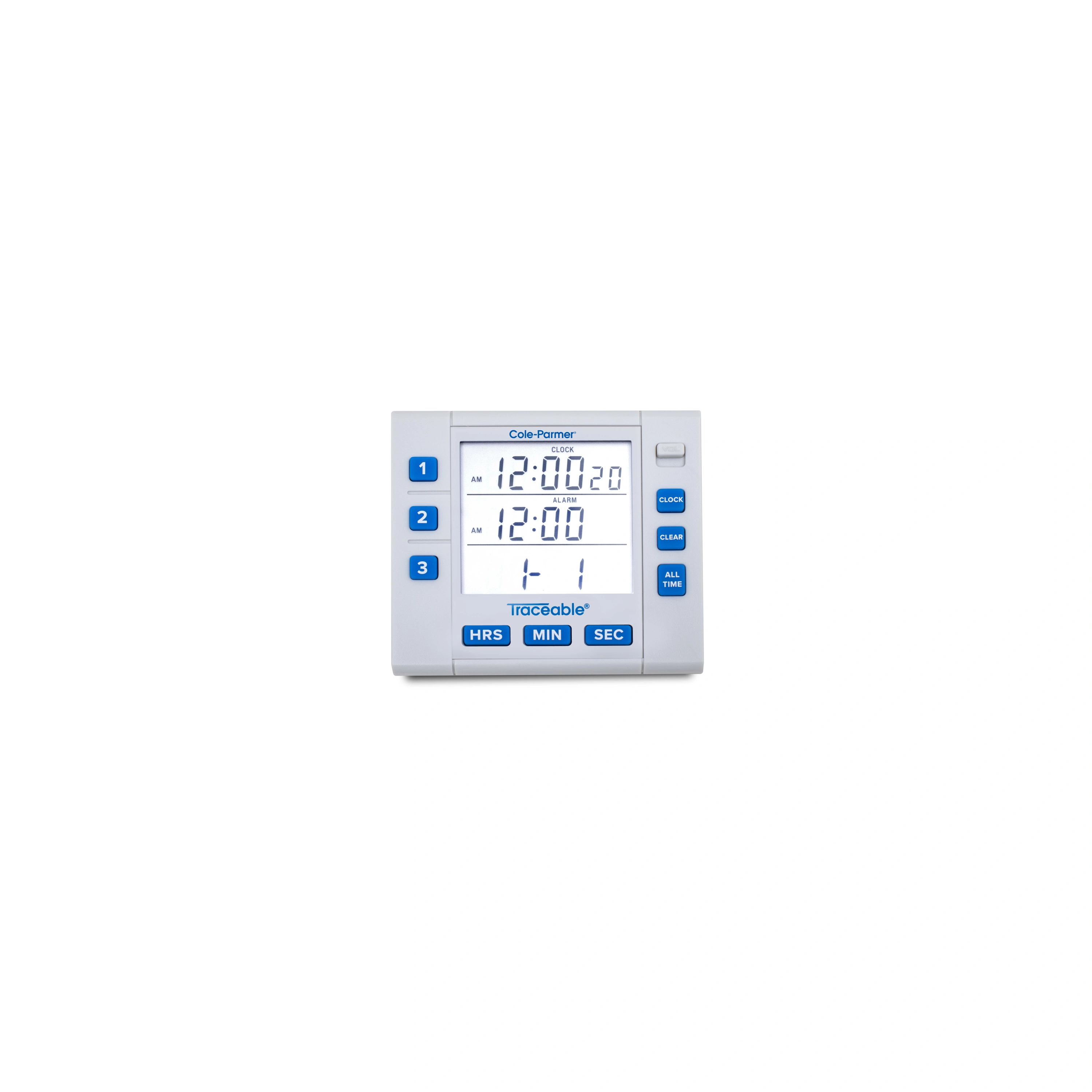 As shown in the picture, this user-friendly clock and stopwatch is multifunctional and can be used to run up to three tests simultaneously, regardless of start time. This is a good feature for the user to track cooling, heating, and incubation time spans. An alarm sounds with a TIME’S UP message prompt. With a quartz-crystal accuracy of 0.001% and memory recall for multiple pre-programmed channels, the user can multitask without worrying about mistakes or inconsistencies s among samples.