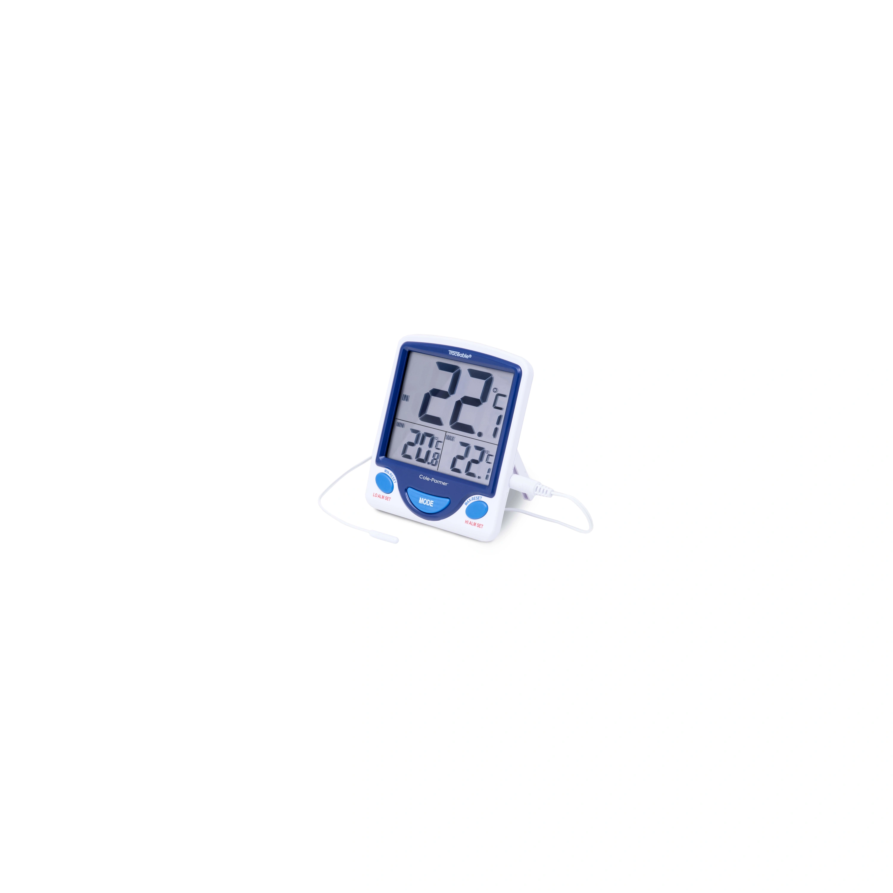 - Triple display simultaneously shows maximum, minimum, and current probe temperatures plus room temperature.