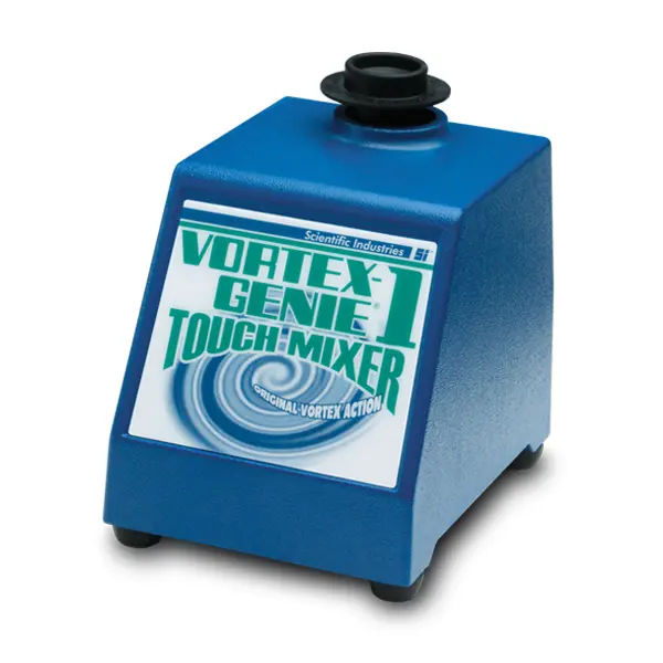 For vigorous vortexing, the Vortex-Genie 1 Laboratory Mixers are an excellent choice for any number of applications. These mixers are supplied with a pop-off cup head, which accommodates test tubes. The fixed-speed vortex mixing action helps prevent spilling, even when tubes are uncapped. An optional 3" platform attachment (sold separately) allows the mixers to be used with beakers and flasks, and for multiple tube vortexing. Mixers are ETL listed, CE-marked.
